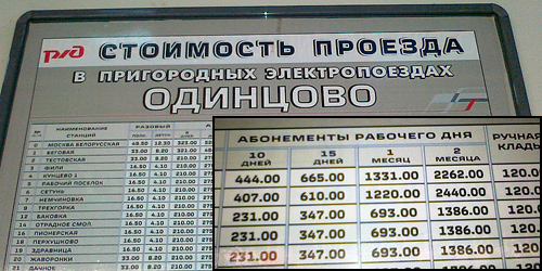 Отправлено 28 июня 2011 в 16:58 — Объясните мне пожалуйста: Вот в Одинцово висит стоимость проезда в электричках. Я хотела купить себе проездной по рабочим дням на 2 недели. Выбрала до Фили на 10 дней за 231 рубль. Мне пробили чек: Абонементный билет рабочего дня Действует с 24 июня по 03 июля туда-обратно 231 рубль В итоге получилось, что в этот временной промежуток выпало всего 6 рабочих дней. То есть 1 билет на 1 день обошелся мне в 38 руб 50 коп. Когда в кассе я могла купить его за 33 рубля. В чём вообще фишка этих проездных?… Изображения | |