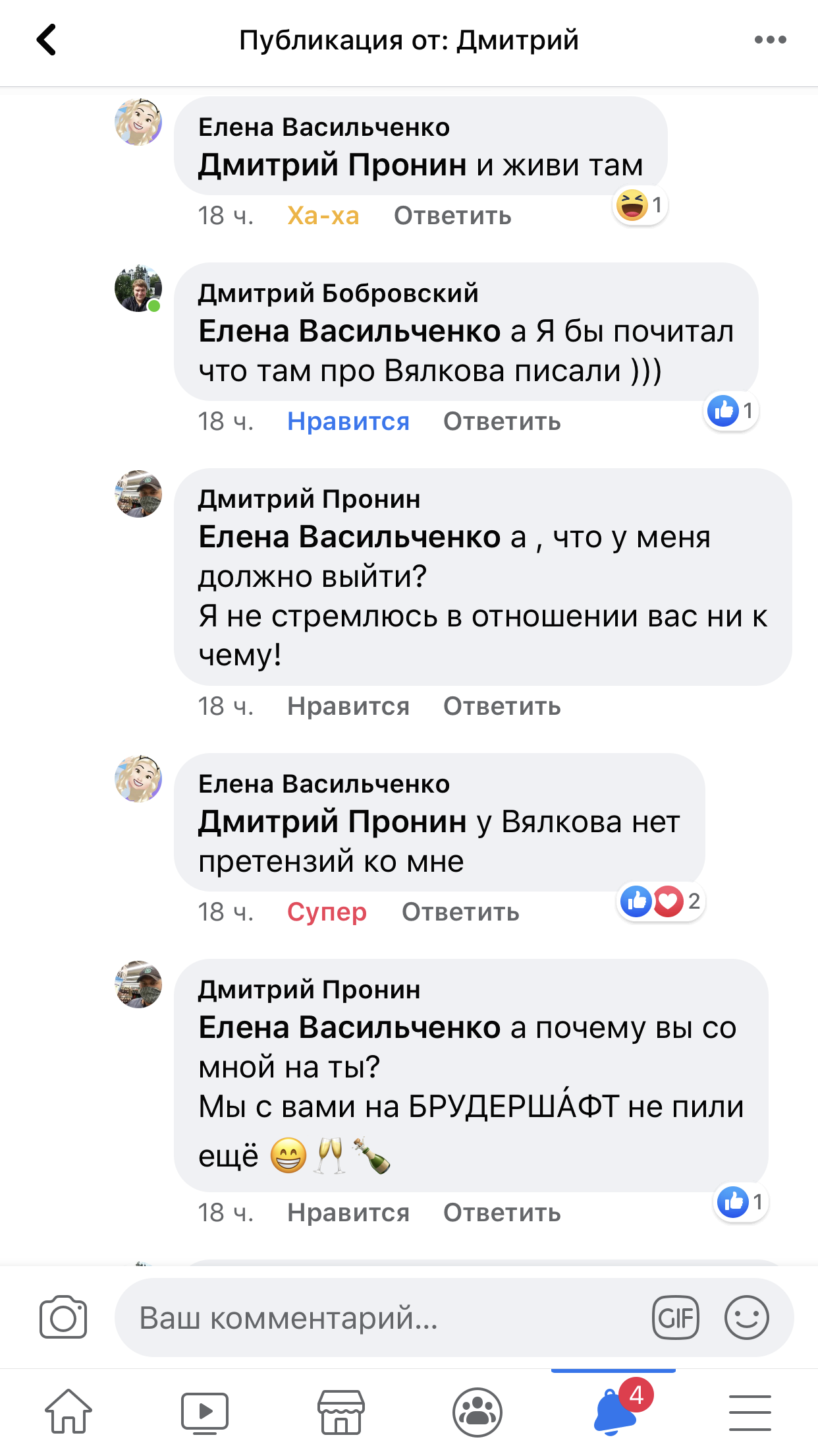 Отправлено 22 июня 2020 в 04:57 — Прочел статью, только не понял, а за что Елена Васильченко должна писать опровержение к своей статье?, тем более извинятся перед Вялковым С. Л.? Статья написана абстрактно, я бы сказал даже очень корректно в отношении Вялкова С. Л. А на счет судов и оправданий))) вам ли Дмитрий не знать как это все работает)))) Вашу личную переписку с ней)))) обсуждать не хочу))) смешно. Ей скидка, она же девочка.))) | |