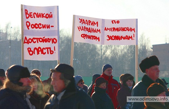 Известный анекдот о том, что будет, если пойти на митинг в футболке с надписью «Хутин Пуй?», в данном случае не работает. «Дизды падут», даже если на митинг не пойдешь. А поддерживать Путина, похоже, и вправду затаскивали силком. В противном случае, как объяснить феномен, что на стадионе собралось столько народа, в то время как в городе не было ни одного объявления готовящейся акции? С просьбой опубликовать афишу митинга также никто не обращался и в редакцию «Одинцово-ИНФО».