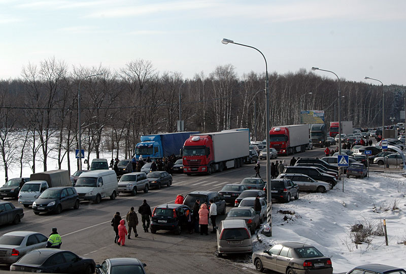 Главная федеральная дорога в районе Кубинки превратилась в пешеходную зону. У сотрудников ГАИ был растерянный вид, такого количества транспорта в этом месте они не видели.