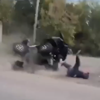 На видео попало, как мужчина на квадроцикле резко затормозил и упал на дорогу, а его транспортное средство несколько раз перевернулось, после чего налетело на пенсионера, который стоял на тротуаре.