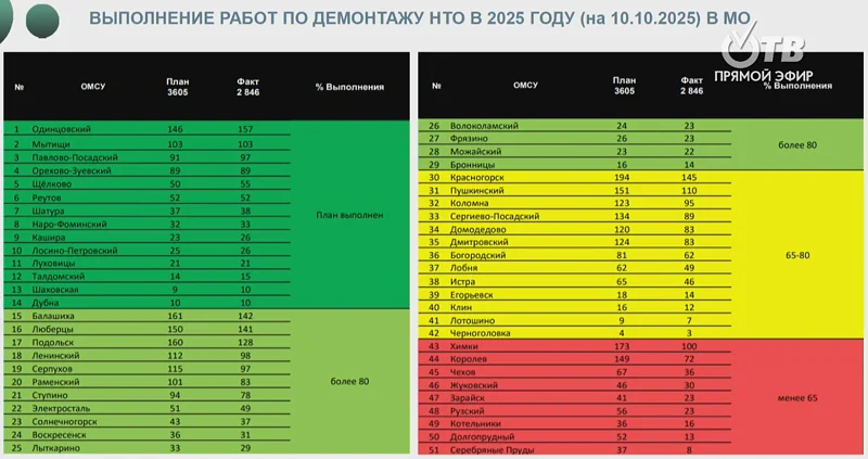 Выполнение плана по демонтажу нестационарных торговых объектов в городских округах Подмосковья на 10 октября