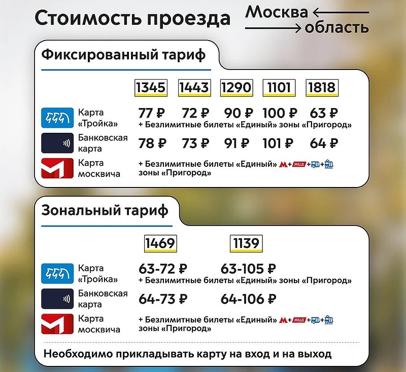 Тарифы на автобусные маршруты Одинцовского округа (№№ 1101, 1139 и 1818), которые передадут Москве