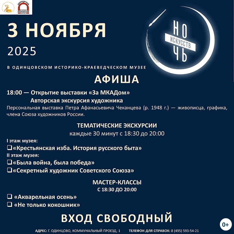 Афиша акции «Ночь искусств» в Одинцовском историко-краеведческом музее, 3 ноября