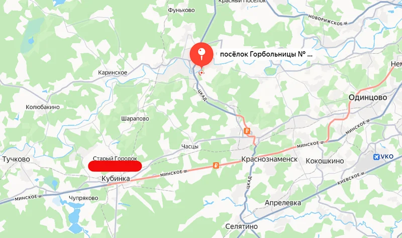 Старый Городок и посёлок Горбольницы № 45 на карте