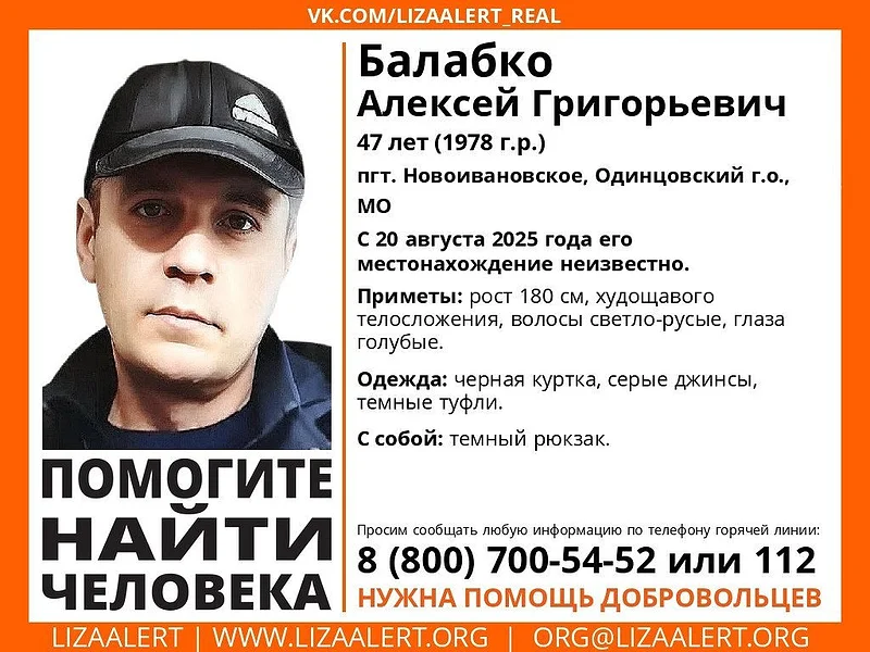 В Одинцовском округе ищут 47-летнего Алексея Григорьевича Балабко из Новоивановского