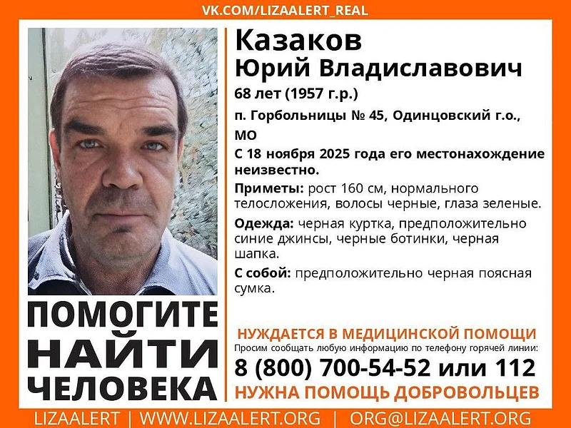 В Одинцовском округе ищут 68-летнего Юрия Владимировича Казакова