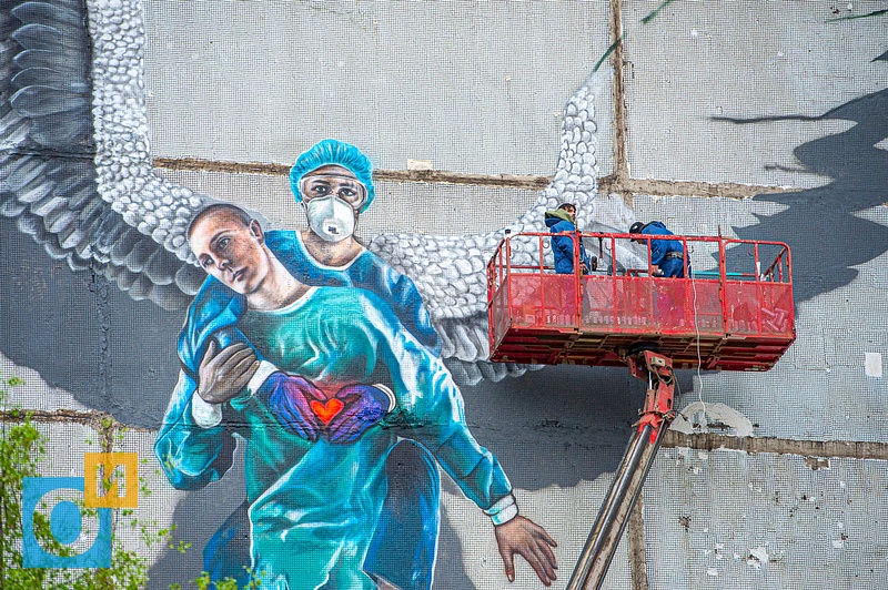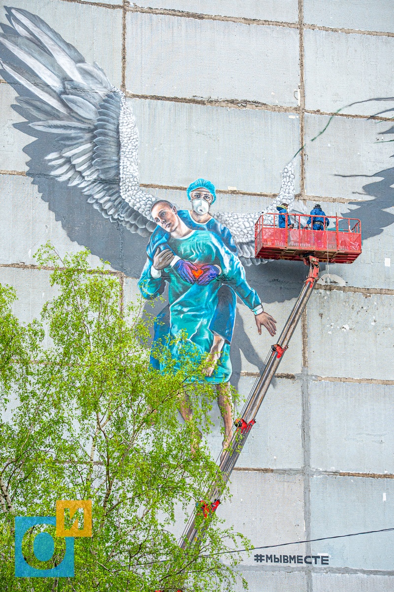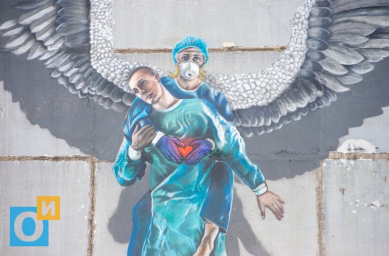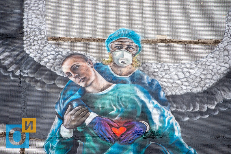 Граффити, посвящённое медсёстрам, улица Маршала Жукова, 36. Создано при финансировании Администрации президента