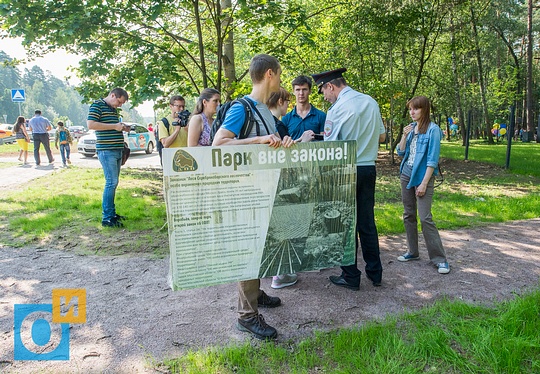 Полицейские инструктируют участников пикета в парке «Раздолье»