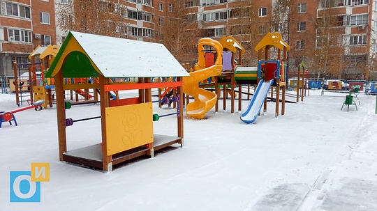 Расчищенная детская площадка у дома Маршала Жукова, 34А, а тротуар — нет
