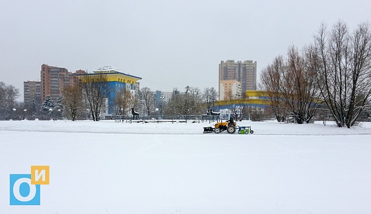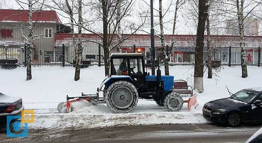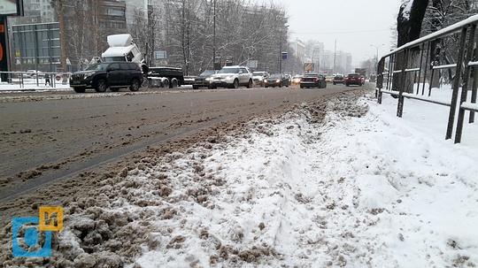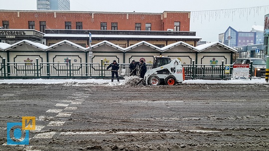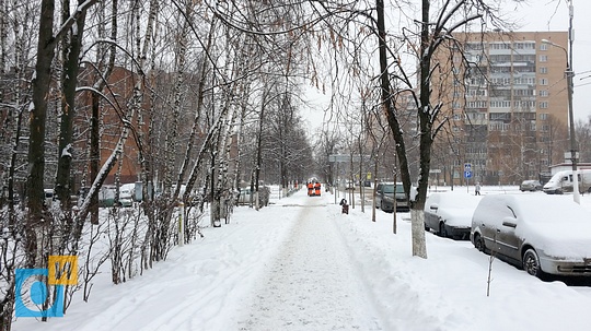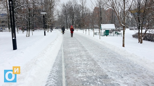 Уборка снега на тротуаре вдоль бульвара Любы Новосёловой