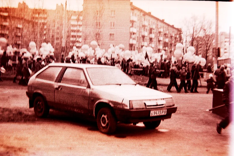 1985 г 7е ноября Демонстрация. Можайское шоссе около д71 Дубрава и одна из первых в городе ваз 2108