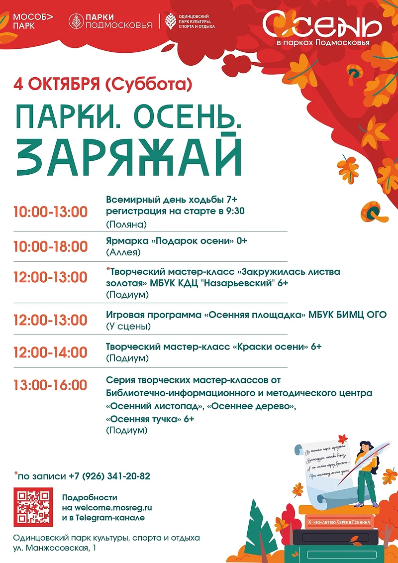 Афиша осеннего фестиваля 4 октября в Одинцовском парке культуры, спорта и отдыха