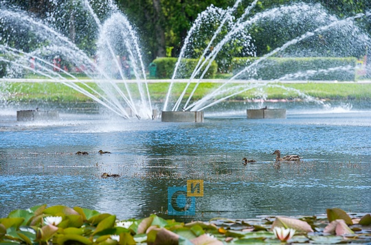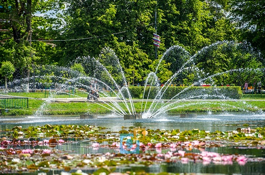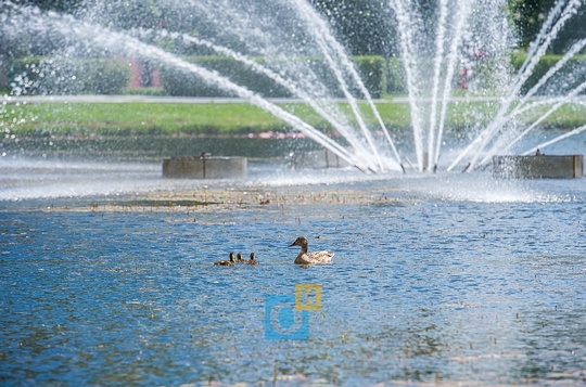 Пруд на центральной площади, фонтан, олений остров