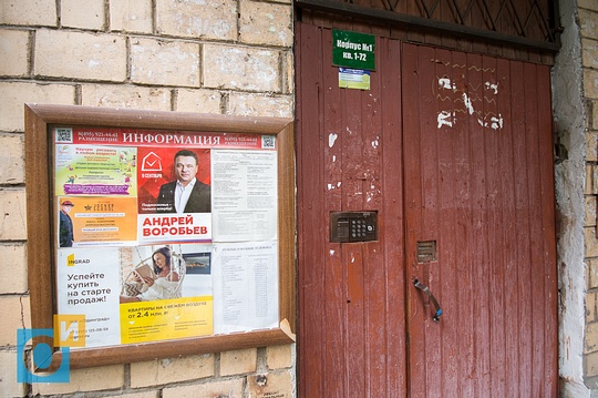Агитация за Андрея Воробьёва на информационном стенде у входа в подъезд