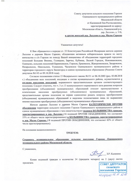 Жители села Лайково письменно требуют от депутатов поселения сохранить сельское поселение