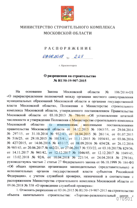 Руслан Тагиев отозвал разрешение на строительство торгового центра в Одинцово