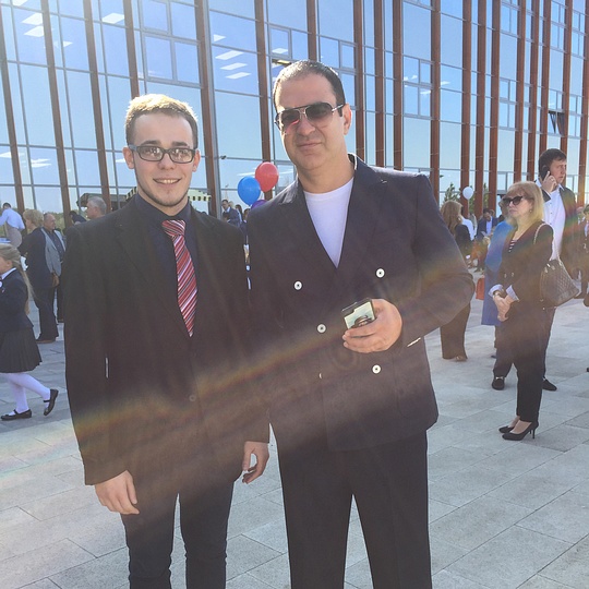 Папа может! Семья губернатора Московской области Андрея Воробьёва 1 сентября 2017 года на открытии Гимназии имени Е. М. Примакова. Дети одеты в униформу гимназии.