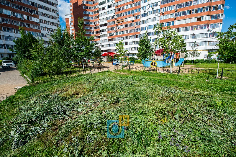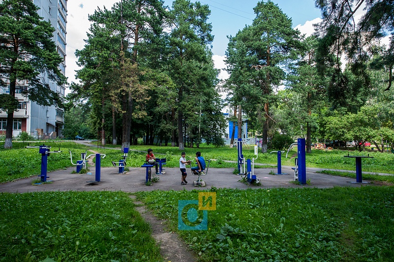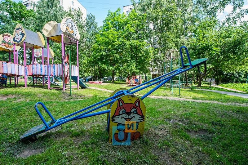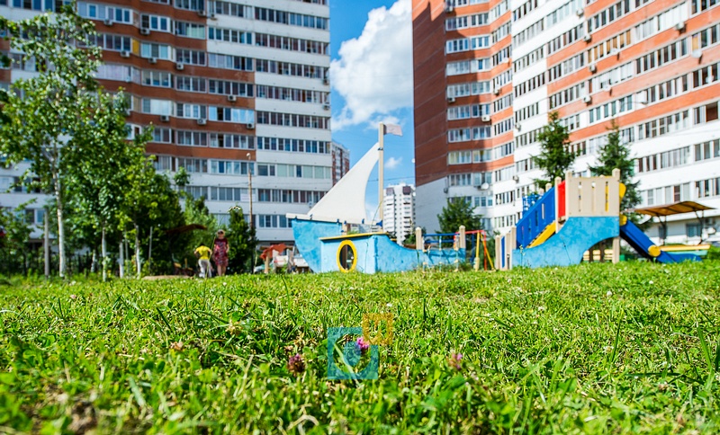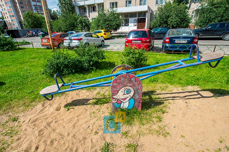 Детская площадка, постриженный газон. Вокзальная, 37.