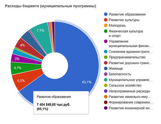 В 2018 году более 65% годового бюджета муниципалитета (7 400 тыс руб.) планируется потратить на финансирования образования