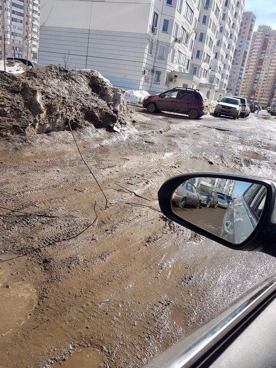 Состояние дорог в Новой Трехгорке, дорога рядом с домом по улице Чистяковой, д.58