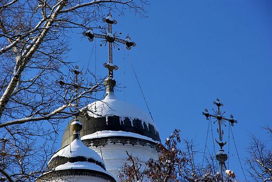 Установка куполов на храме в Лесном городке (19 янв 2010)