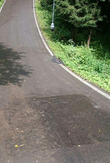 На этом участке трассы покрытие было повреждено вандалами, которые разожгли костер