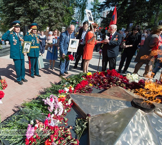 День Победы в Немчиновке. Возложение цветов к памятнику в поселке Немчиновка.
