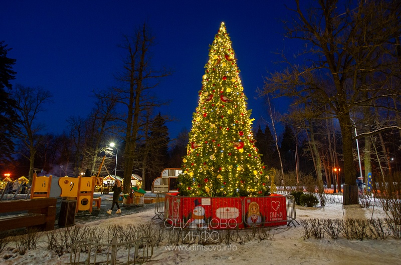 Новогодняя иллюминация в парке спорта и отдыха в Одинцово, зима 2020-2021