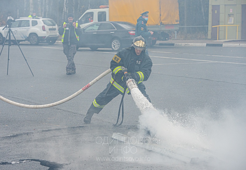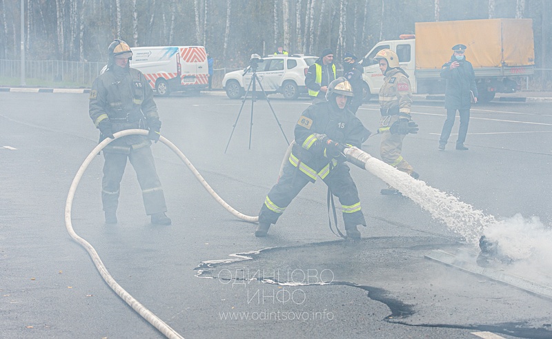 Учения на Северном обходе Одинцово, спасатели извлекают пострадавшего из салона