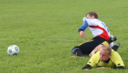 Финал Кубка Одинцовского района по футболу среди мужчин. «Одинцовский Арбат» забивает второй мяч в ворота «Выбора»