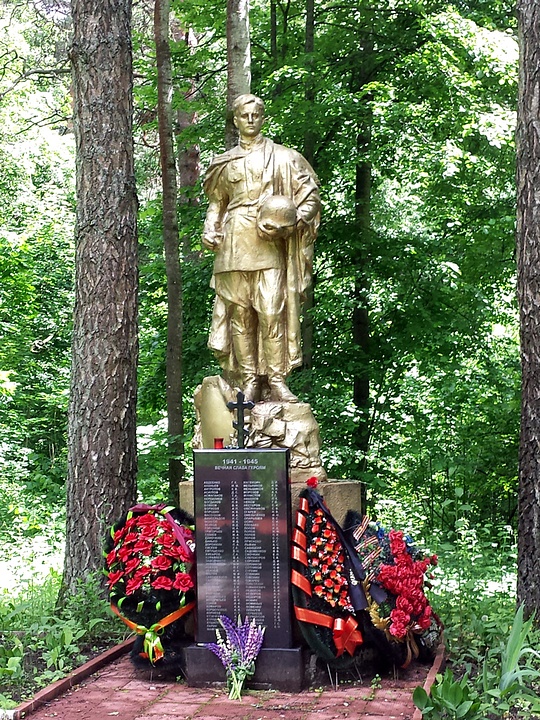 д. Якшино (лесной массив). Братская могила 10 и неизвестных солдат и 4 х перезахороненных воинов.