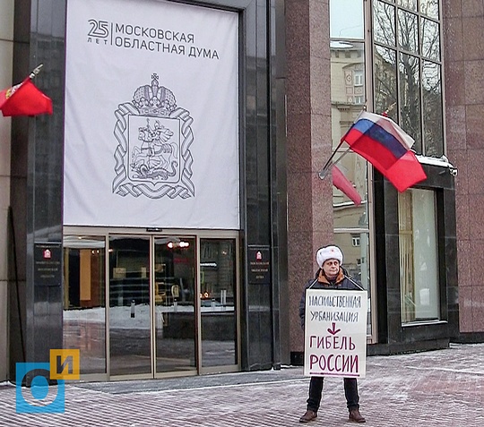 Одиночный пикет «Насильственная урбанизация — гибель России» у здания Московской областной Думы