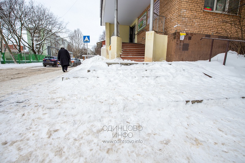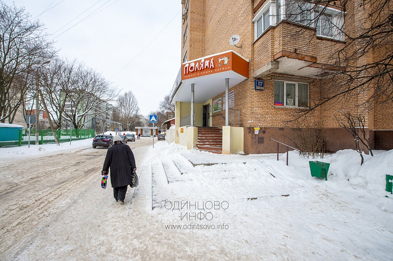 Ателье по ремонту одежды «Поляна» не думает о сохранения жизни здоровья своих клиентов, нарушает закон о благоустройстве Московской области. Лестничный пролёт не очищен от снега и наледи, Можайское шоссе 117