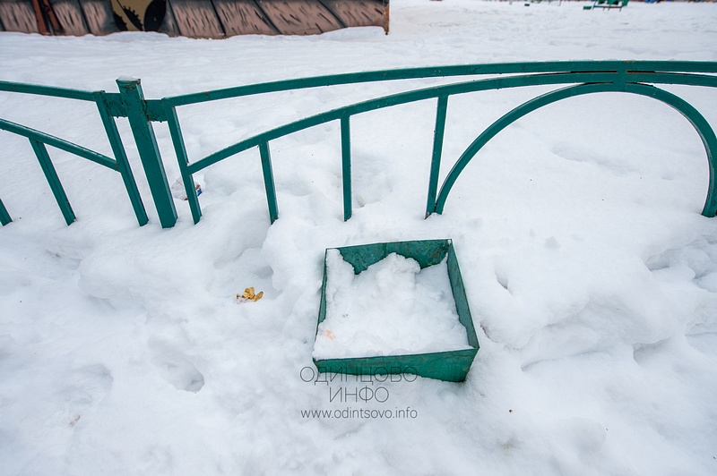 Урны утонули в сугробах вдоль тротуара, Можайское шоссе, в районе дома №105