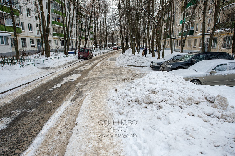Не расчищенная проезжая часть у дома по Можайскому шоссе №85