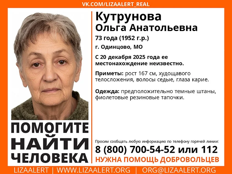 В Одинцовском округе ищут 73-летнюю Ольгу Анатольевну Кутрунову