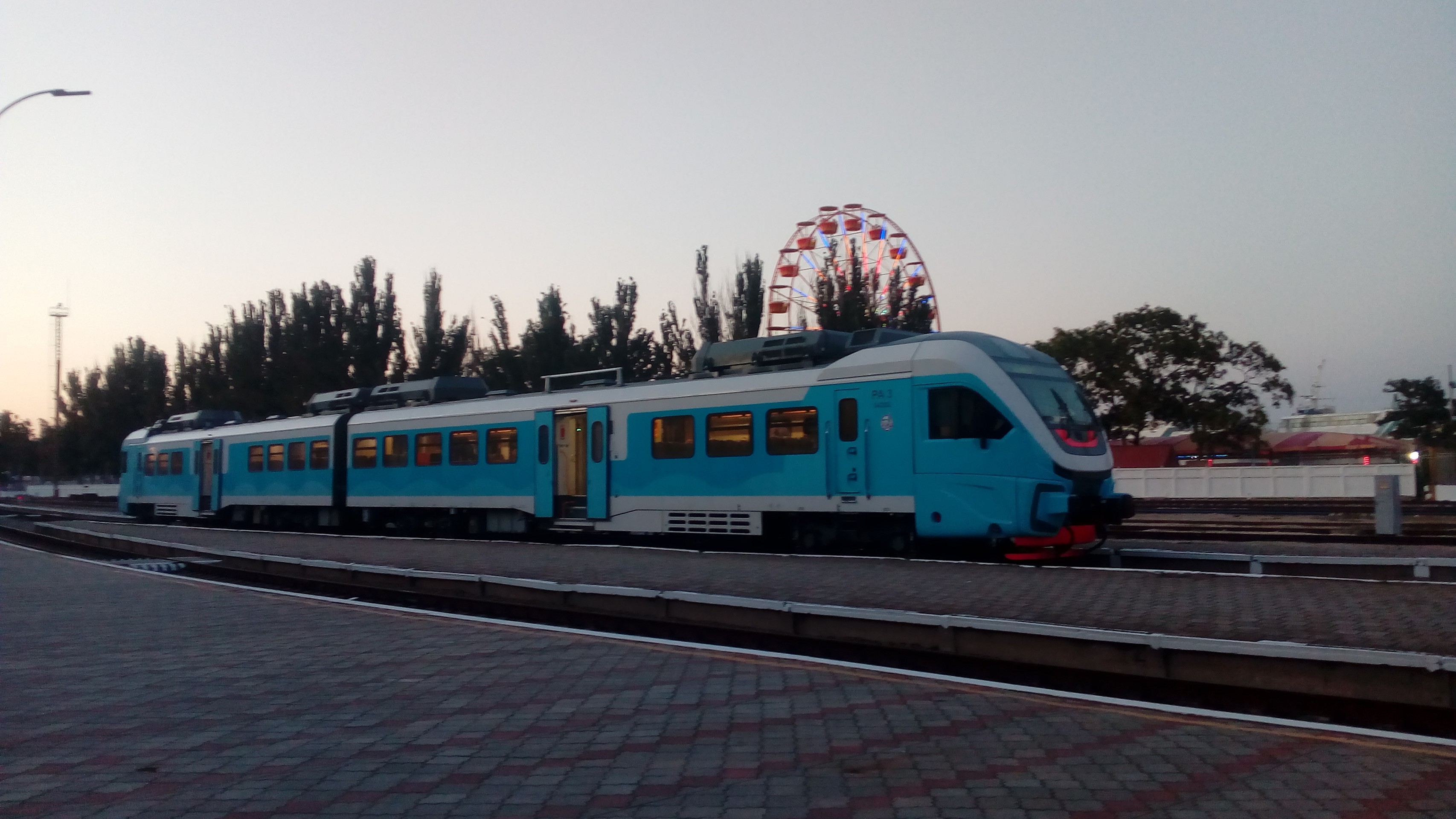 Феодосия. Отремонтированный вокзал. Дальние поезда пока не ходят. Пригородный поезд, ласково называемый местными «Волнушка».